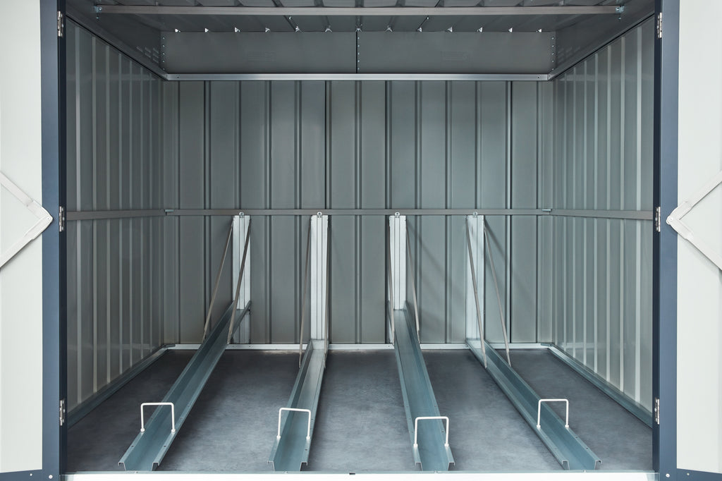 Crafted from high-tensile galvanised steel, the Globel 6 x 6 Bike Locker offers a spacious, secure solution for storing multiple bikes. Its streamlined, low-profile design fits neatly alongside fences, walls, or the side of a house—ideal for driveways and compact outdoor areas.