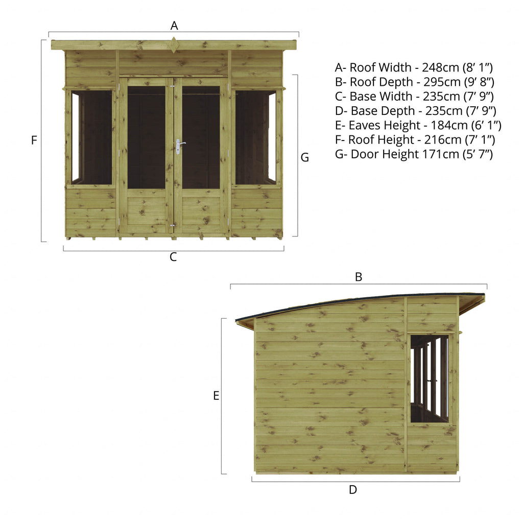 We manufacture this building using premium materials to create a high quality build. The roof and floor are formed using tongue and groove boards that lock together for a robust and heavy-duty finish. The walls are constructed using 12mm Shiplap tongue and groove boards that create a tight seal against the elements and offer a strong and hard-wearing build. We provide high quality mineral felt with this summerhouse to ensure it has added protection against the weather.