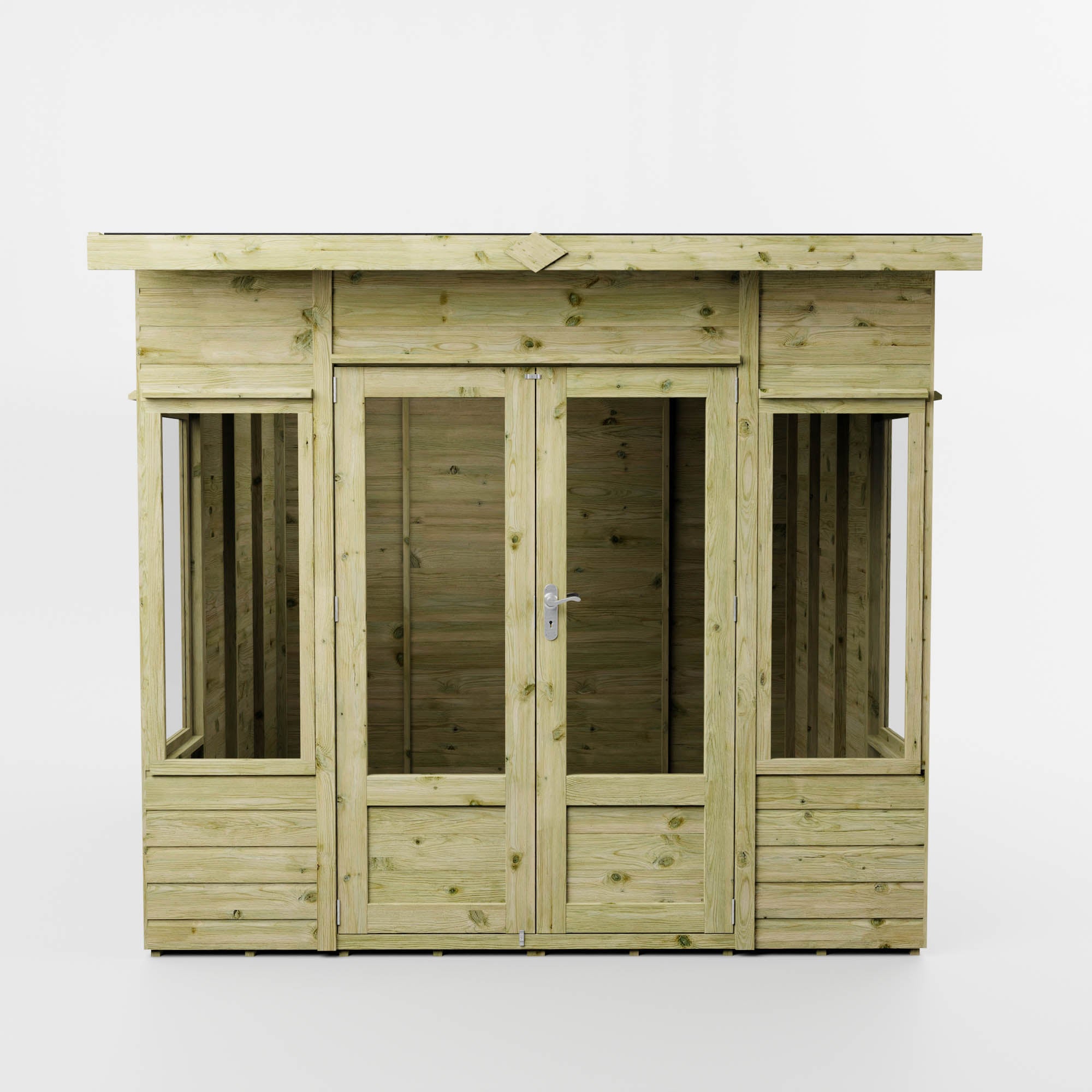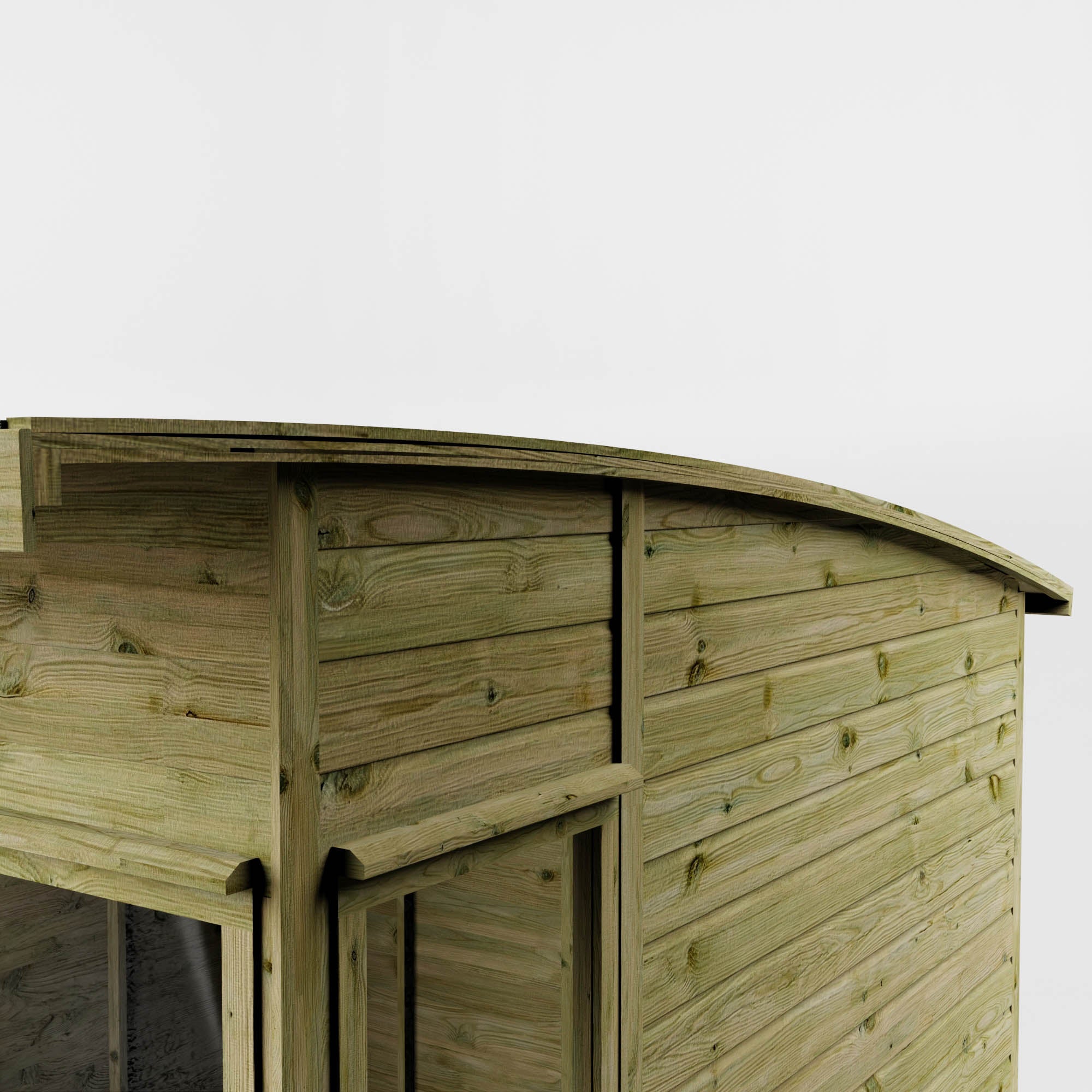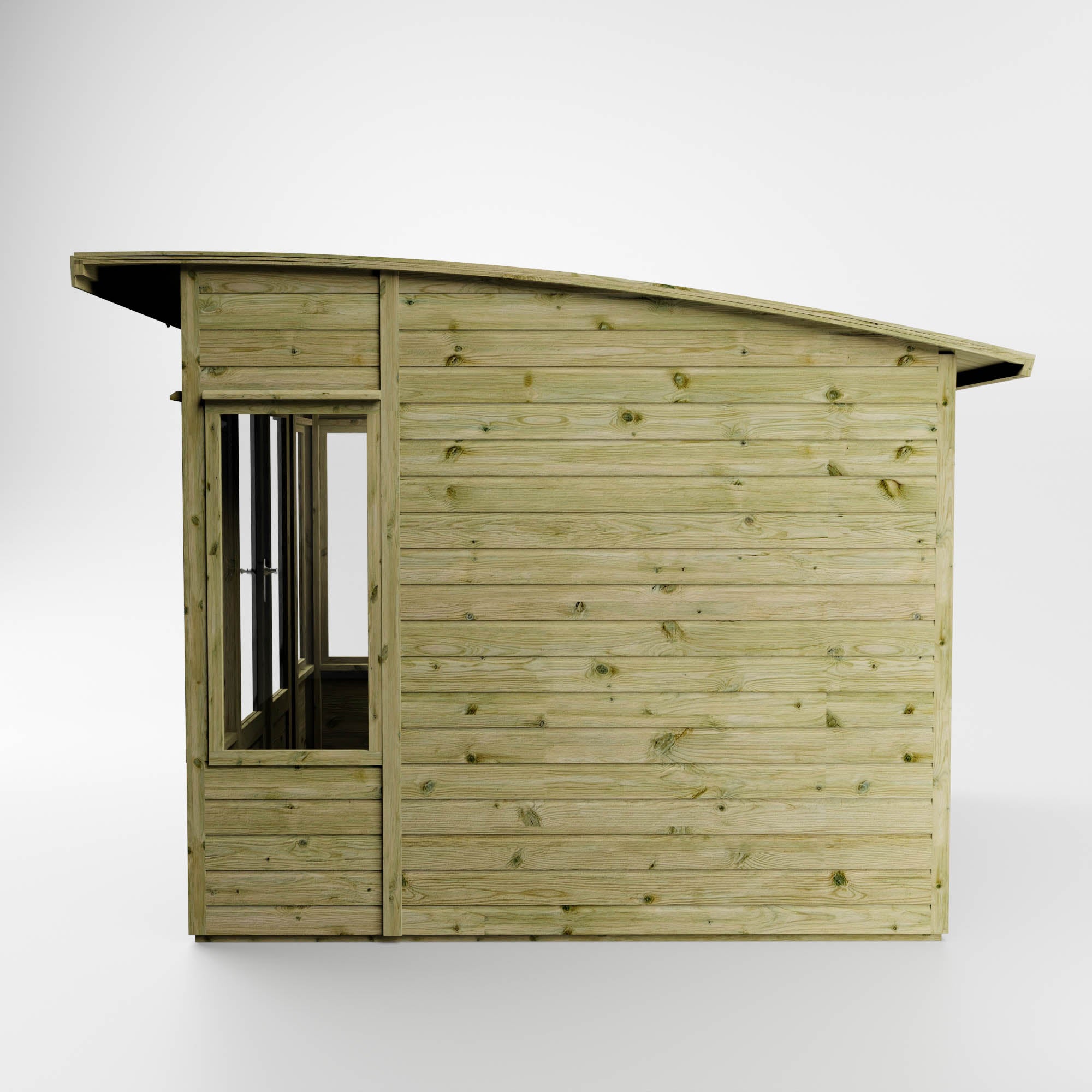 The Helios Summerhouse boasts a stunning, contemporary curved roofline that is sure to become a focal feature within your garden. With styrene glazed windows and French doors, the interior fills with light to create a bright and airy space. Whether you’re looking for an arts and crafts room or somewhere to spend summer evenings, the Helios could be a perfect fit!