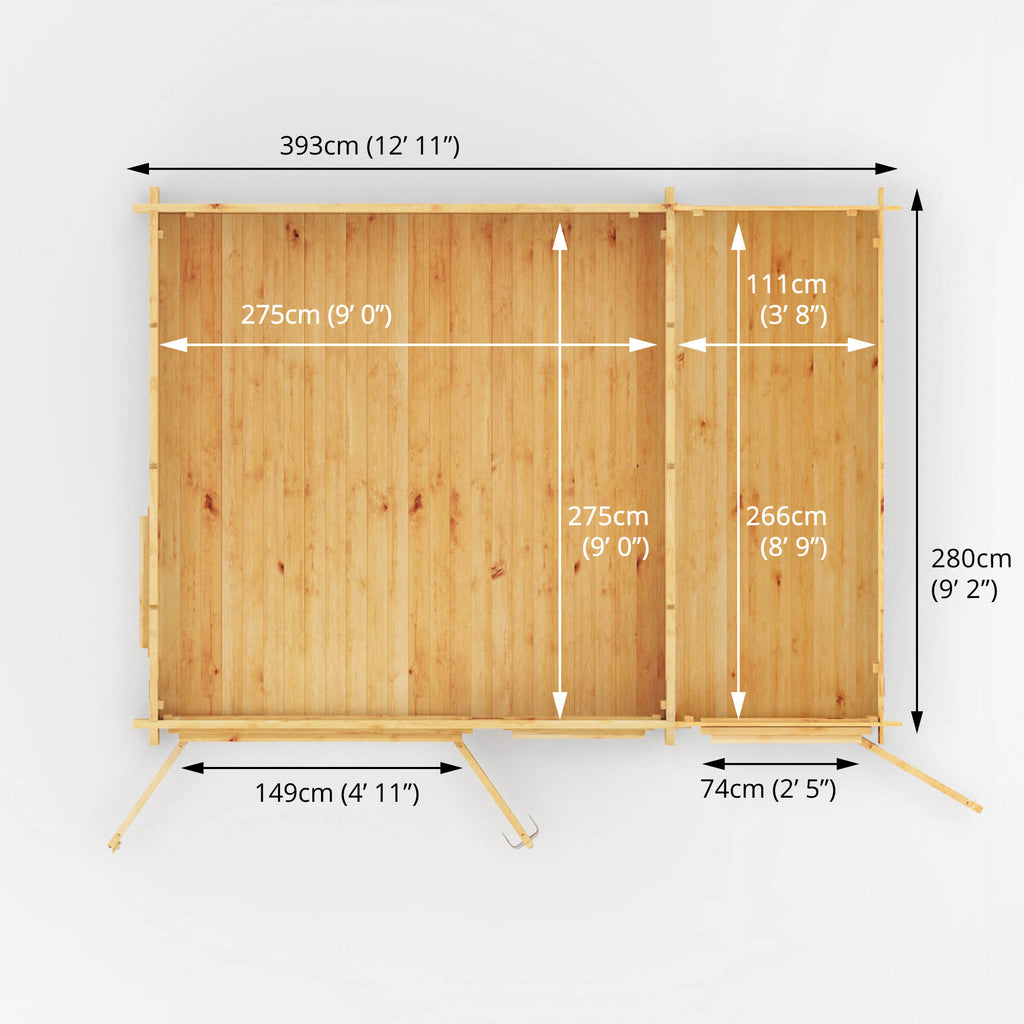 In addition to a new living space, the added bonus of a practical side shed creates additional storage space without adding more clutter to your home. The walls of the side shed are 19mm thick and airtight to create the ideal environment for garden equipment, DIY tools, bikes and children's toys.