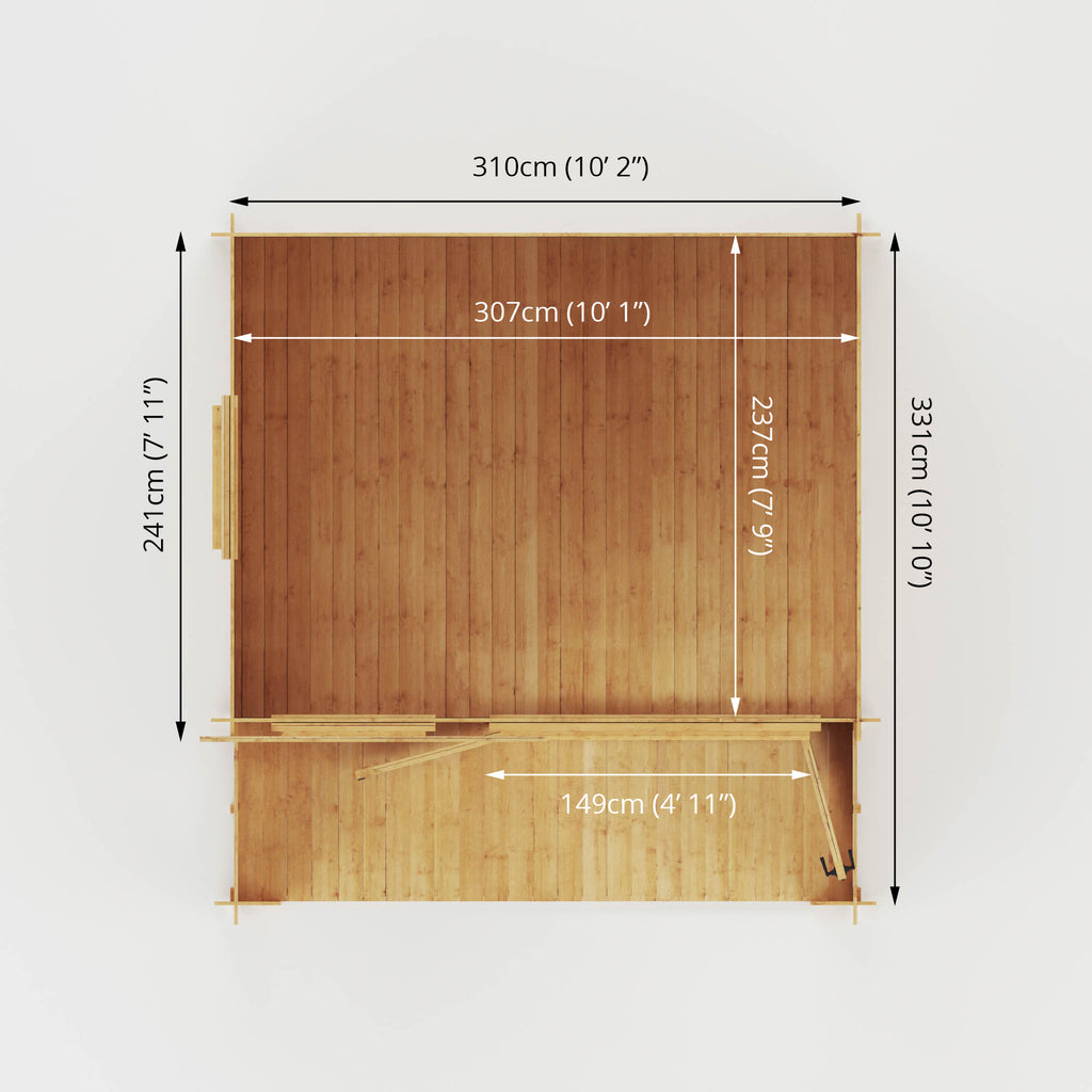 All of our log cabins are manufactured here in the UK, using sustainably sourced and regulated timber. Our cabins are supplied un-treated and will require a coat of high quality timber treatment shortly after construction. This log cabin will be delivered in individual tongue and groove timber lengths and should be constructed on a firm and level base.