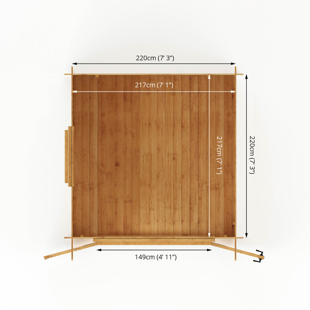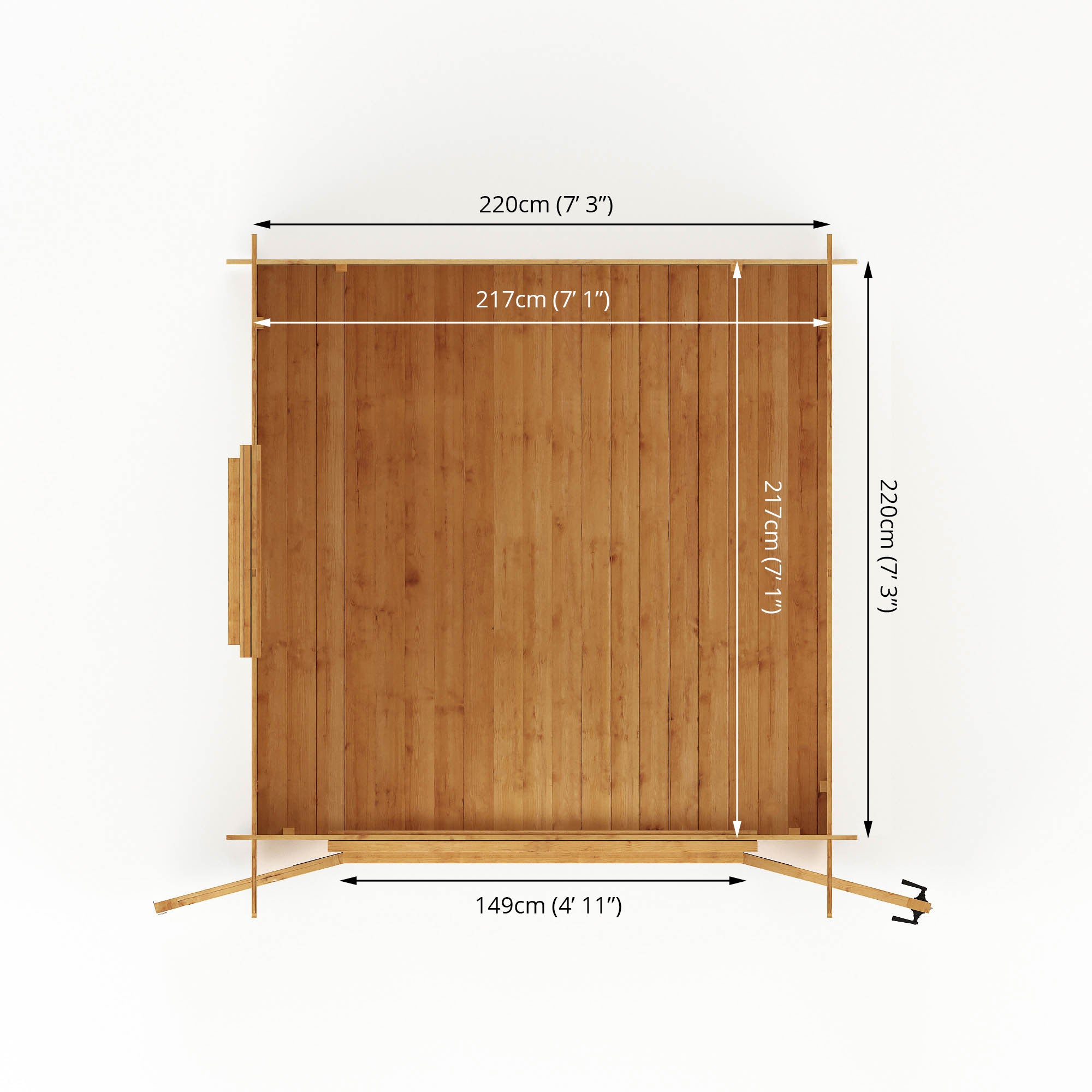 We supply antique style handles and hinges as well as lock and key for the door, to keep your building secure when not in use. The glazing on this cabin is made using high strength SAN styrene, a safe and shatterproof alternative to glass. The cabin is supplied un-treated and will require a coat of high quality timber treatment once installed. The log cabin will be delivered as individual tongue and groove timber lengths and should be constructed on a firm and level base.