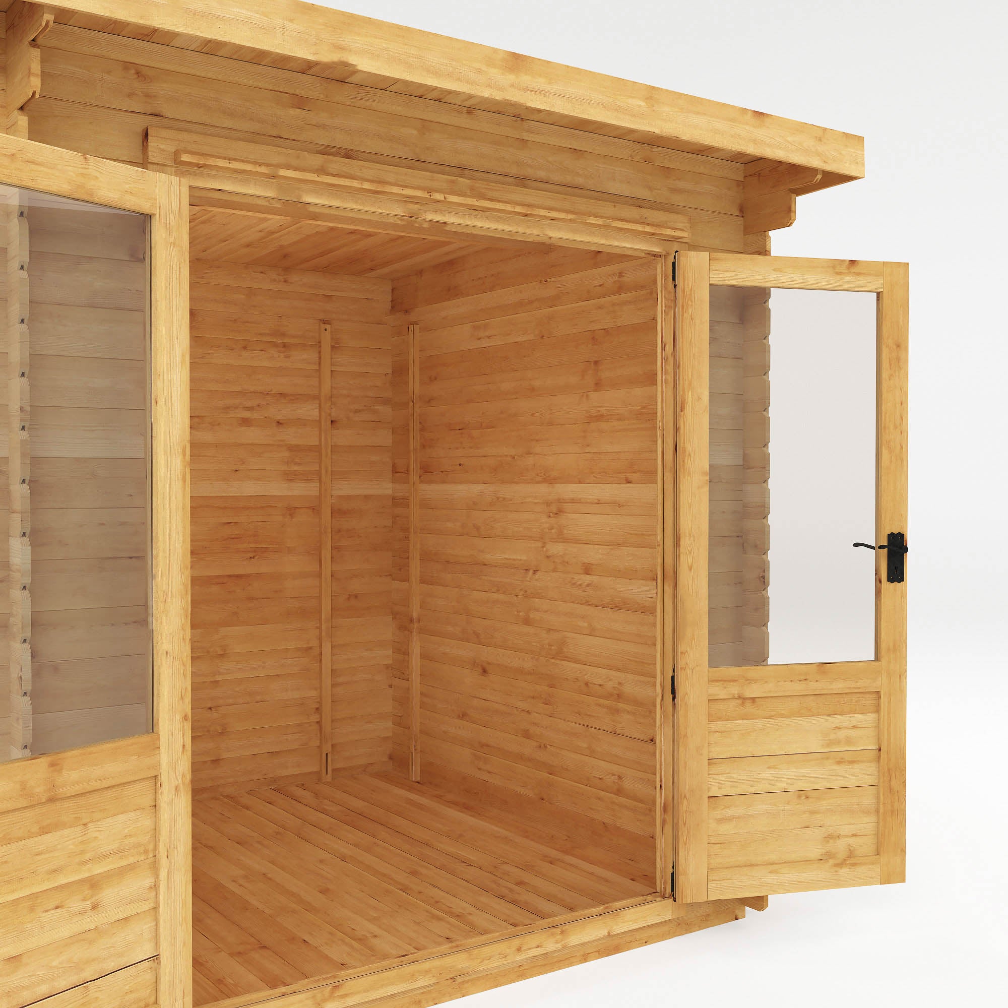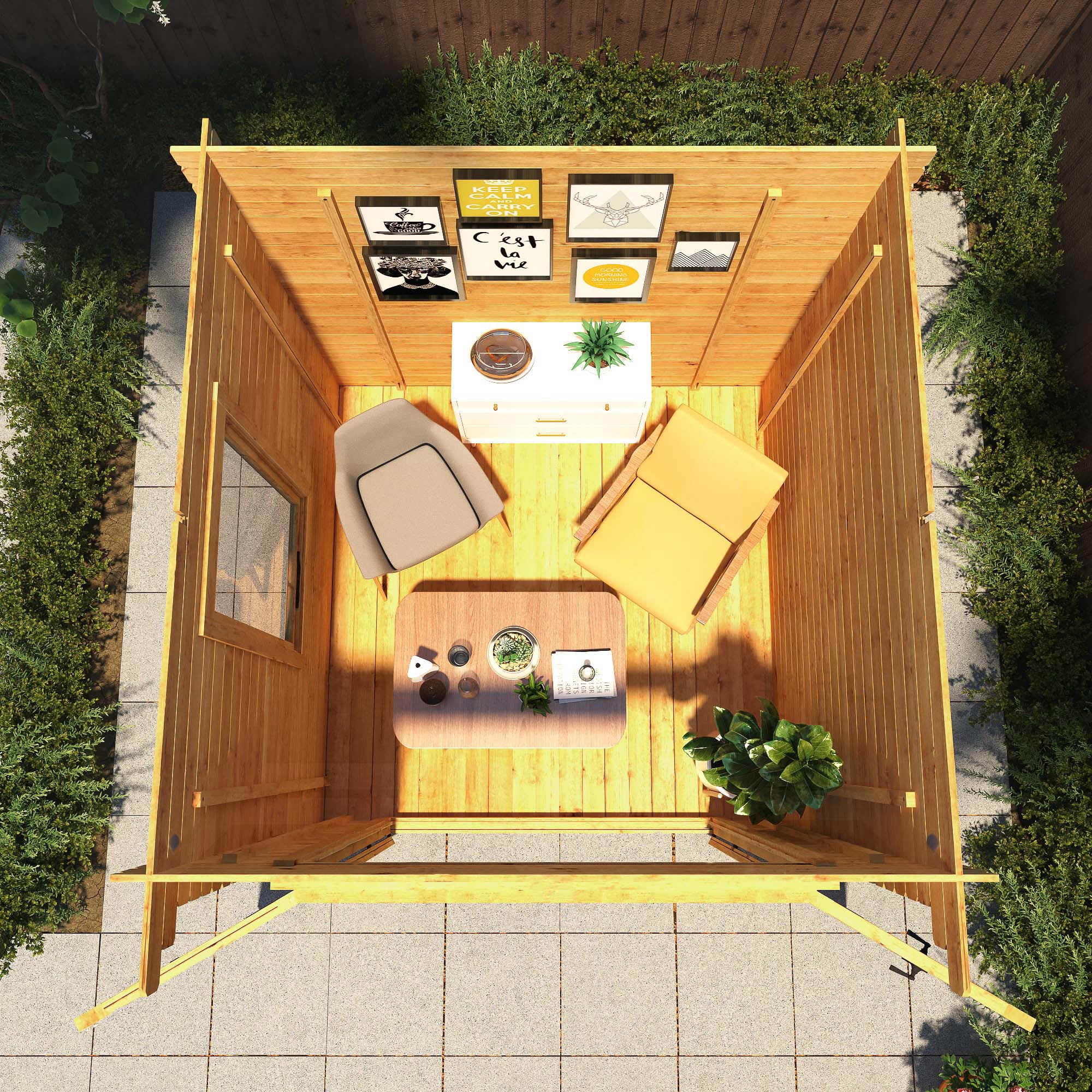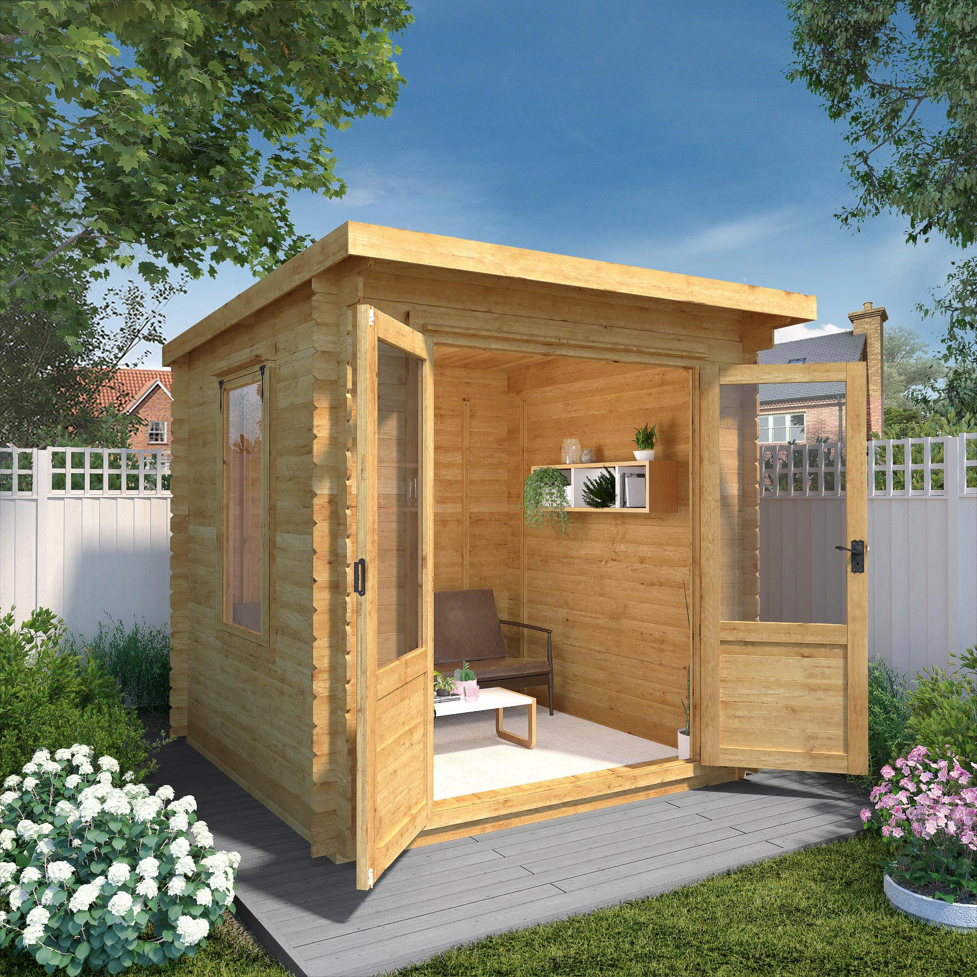 Looking for somewhere in the garden you can go to relax and unwind? The Pent Log Cabin is a compact garden room that won’t take up too much of the garden. Featuring a large opening window and half glazed double doors, the interior is bright, airy and welcoming. With space for comfy chairs, a coffee table and shelving, this cabin is ideal as a reading or hobby room, or as a home office. The stylish and contemporary pent roof design not only looks great, but will also ensure rainwater drains off the back of the building, to avoid the build-up of water.