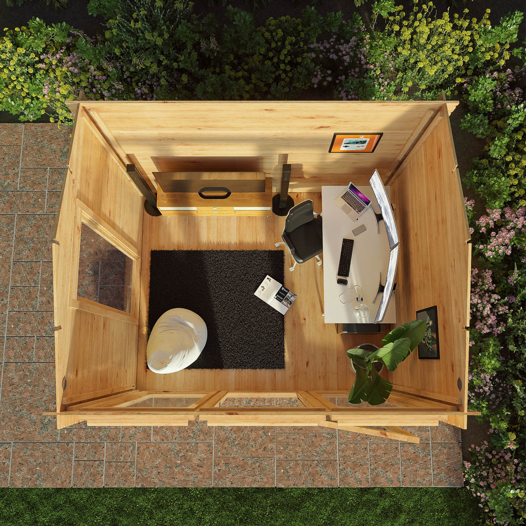 This Log Cabin is a versatile and multi-functional garden cabin. Perfect as a hobby room, a reading room or simply somewhere to relax and enjoy the views of your garden. With enough room for seating and coffee tables or perhaps a small dining set, this space is perfect for entertaining guests. Or maybe you’re in need of a home office or hobby room for the warmer months, with heavy-duty flooring for heavy equipment and featuring a bright and light interior, this cabin creates the perfect working environment. Or you may simply want a peaceful spot you can escape to. This cabin would look great furnished with cosy armchairs and book shelves, creating the perfect snug or reading room. Once furnished with your beloved pieces and decorated to your liking, this cabin would soon become your favourite place to spend time.