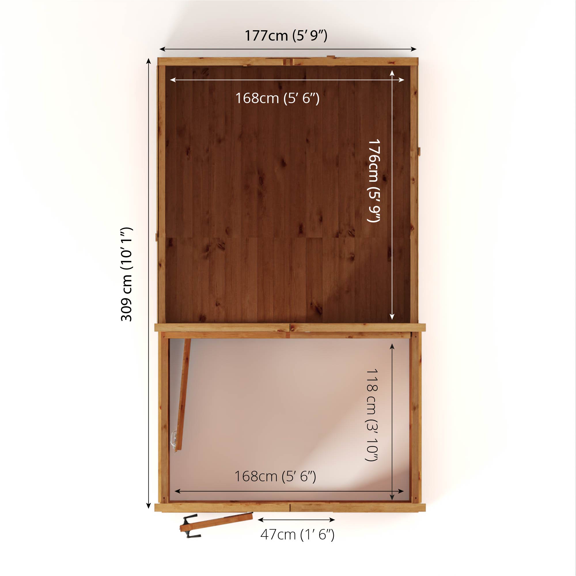 The greenhouse section is designed to create an optimal environment for plant growth, with an opening roof vent to improve airflow and regulate the temperature inside. The shed section provides valuable storage space for your garden tools, pots, and other essentials, helping to keep your outdoor space neat and organised. The high-quality ironmongery adds a touch of traditional style, while the watertight shiplap cladding ensures that both the greenhouse and shed areas are protected from the elements.